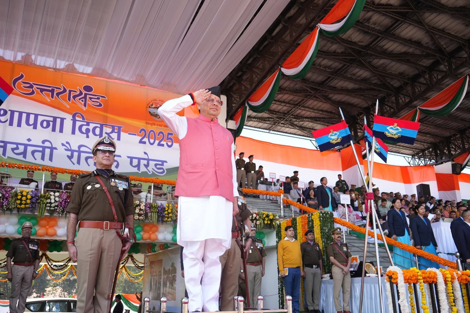 देहरादून पुलिस लाइन में रजत जयंती समारोह कार्यक्रम में हुआ रैतिक परेड का आयोजन। राज्यपाल और मुख्यमंत्री ने ली परेड की सलामी।