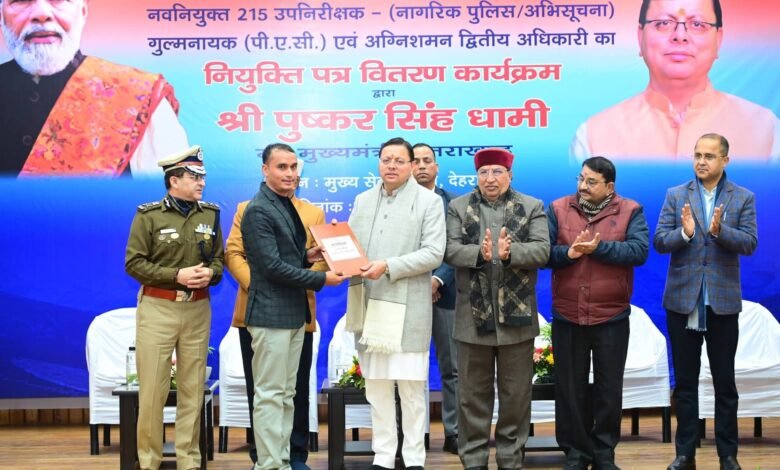 मुख्यमंत्री धामी ने 215 उपनिरीक्षकों को सौंपे नियुक्ति पत्र