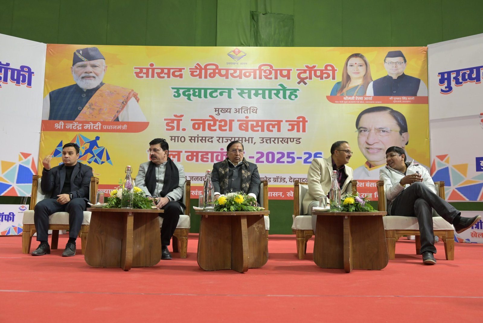 युवा कल्याण विभाग, देहरादून द्वारा खेल एवं शिक्षा विभाग के समन्वय से मुख्यमंत्री चैम्पियनशिप ट्रॉफी के अन्तर्गत जनपद स्तरीय सांसद चैम्पियनशिप ट्रॉफी की खेलकूद प्रतियोगिताओं का शुभारम्भ आज मल्टीपरपज हॉल, परेड देहरादून में किया गया। कार्यक्रम का उद्घाटन मुख्य अतिथि नरेश बंसल, माननीय सांसद (राज्यसभा) द्वारा किया गया।