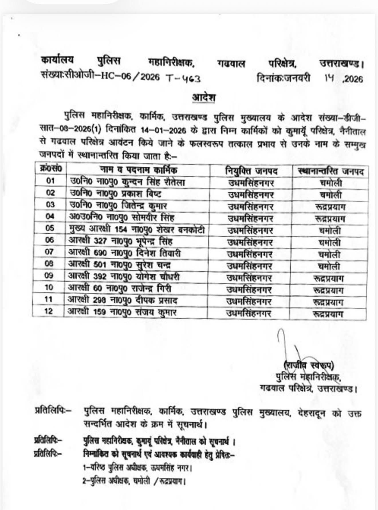 ◼️ निष्पक्ष जांच सुनिश्चित करने हेतु 12 पुलिस कर्मियों का तत्काल जनपद चमोली एवं रुद्रप्रयाग स्थानान्तरण