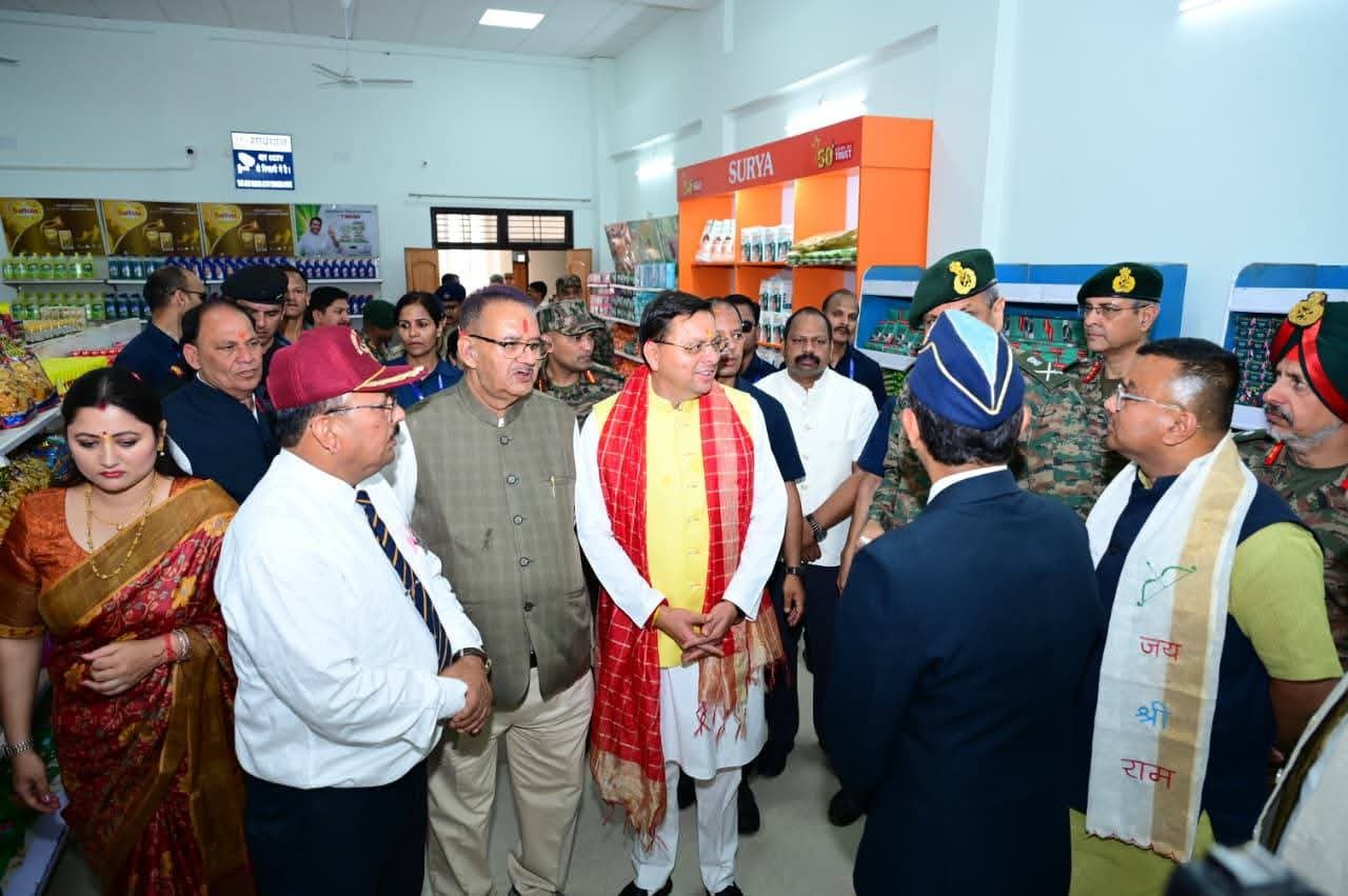 इस अवसर पर मुख्यमंत्री ने 715.51 लाख रुपये की लागत से निर्मित सीएसडी कैंटीन तथा 162.26 लाख रुपये की लागत से बने सैनिक मिलन केंद्र का लोकार्पण किया। कार्यक्रम के दौरान उन्होंने अपने पिता स्व. सूबेदार शेर सिंह धामी एवं शहीदों के चित्रों पर पुष्प अर्पित कर श्रद्धांजलि दी।